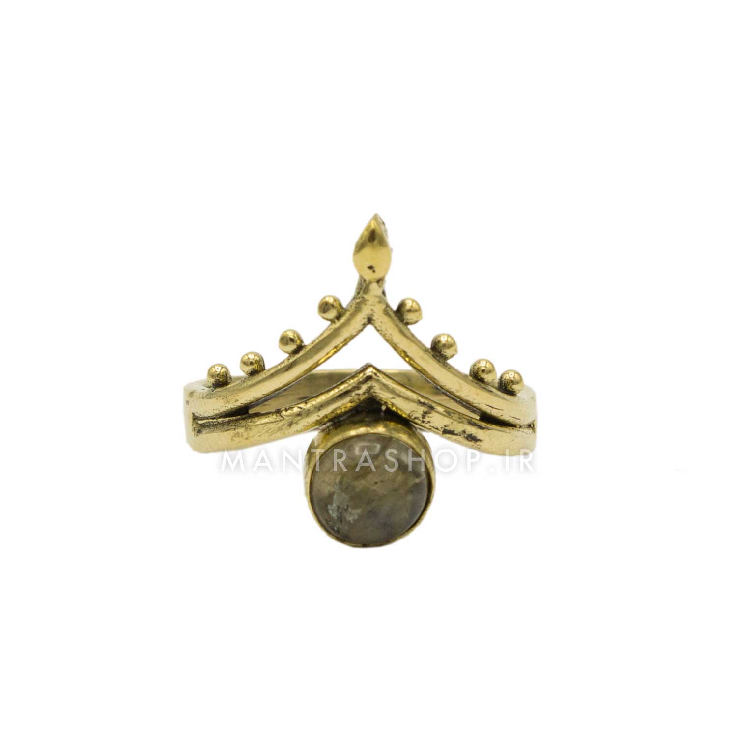 انگشتر برنجی دست ساز و سنگ لابرادوریت کد 1135