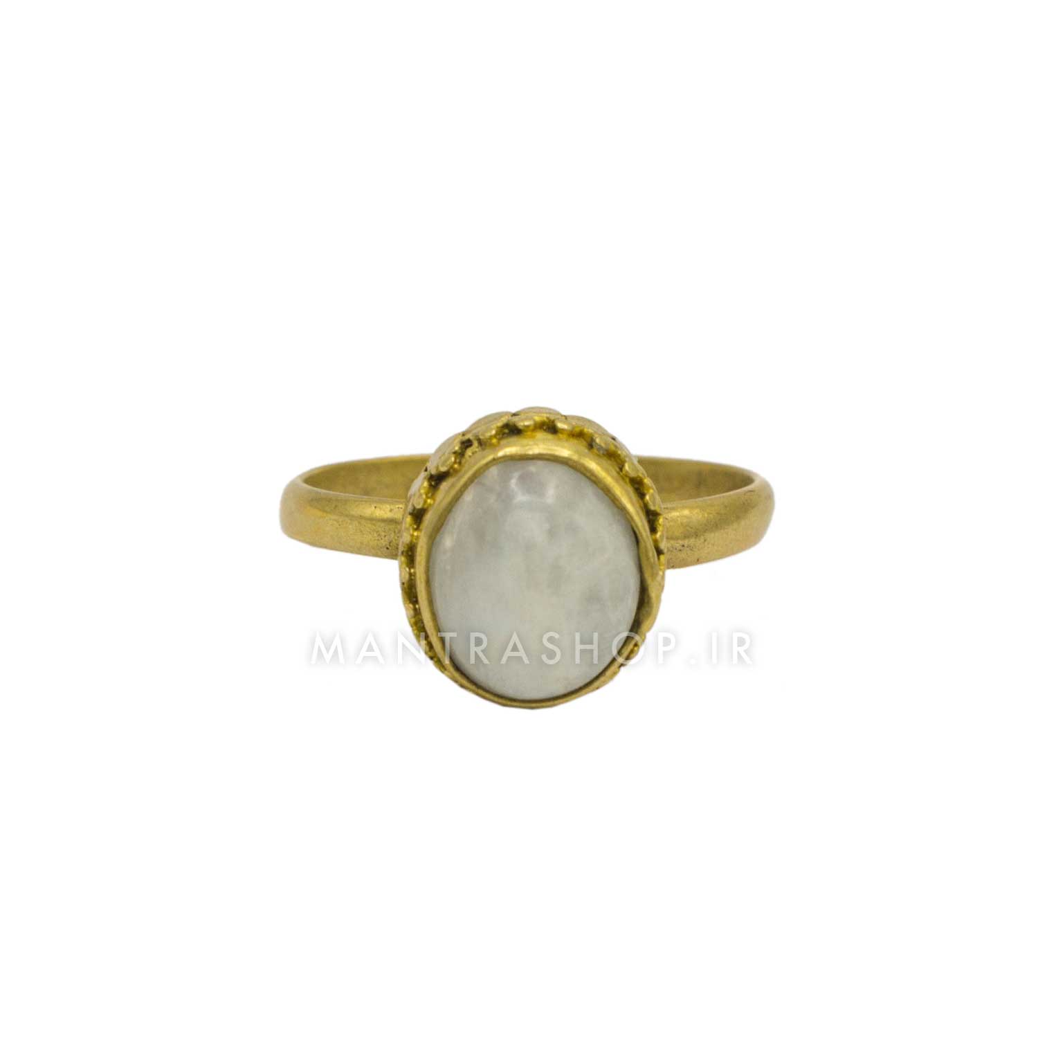 انگشتر برنجی دست ساز و سنگ مون استون کد 1154