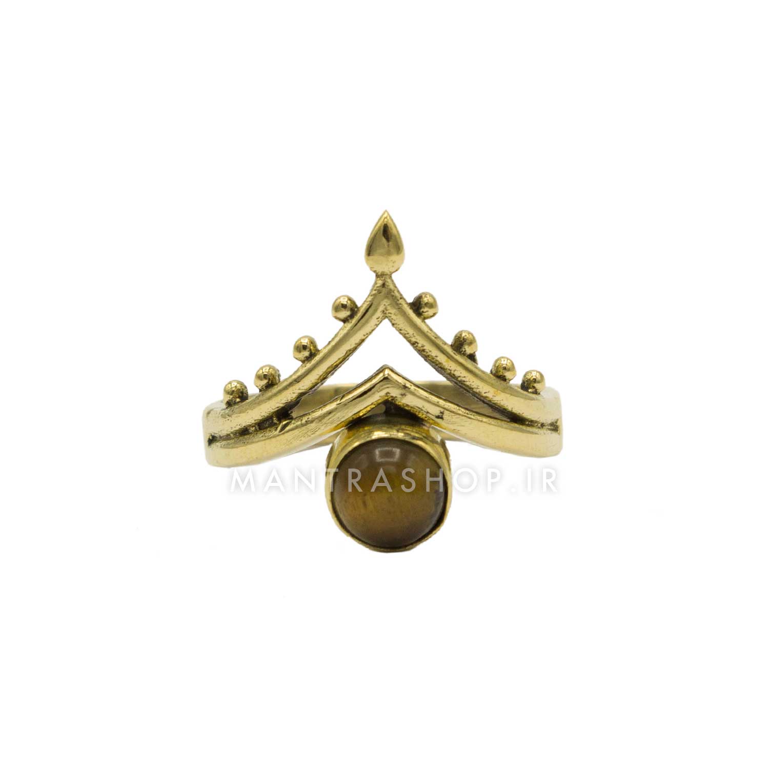 انگشتر برنجی دست ساز و سنگ چشم ببر کد 1133