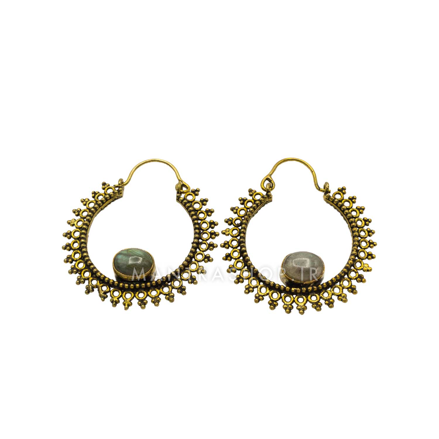 گوشواره برنجی دست ساز هندی با سنگ لابرادوریت کد 1233