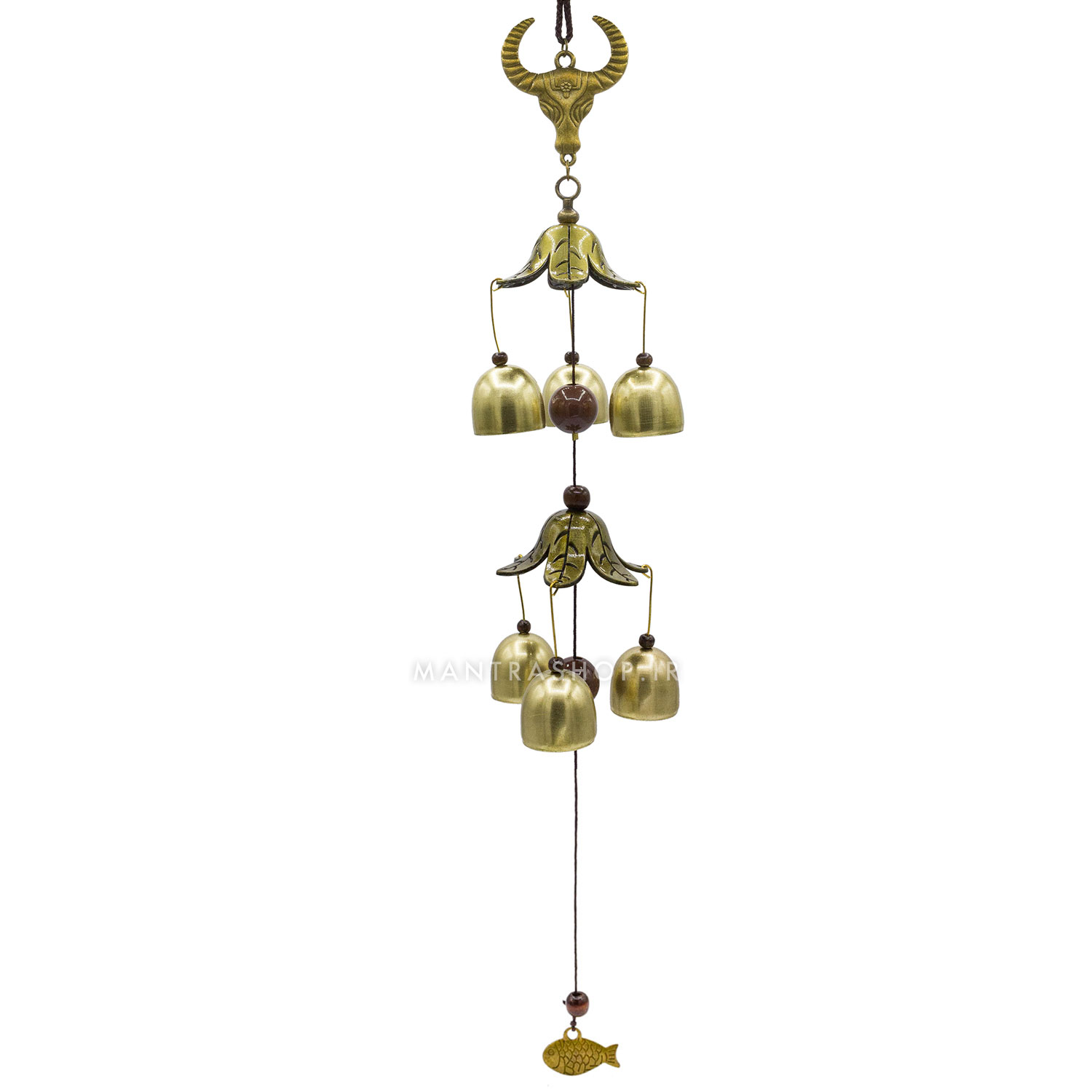 بادزنگ فنگ شویی فلزی شش زنگوله مدل سر گاو کد 314